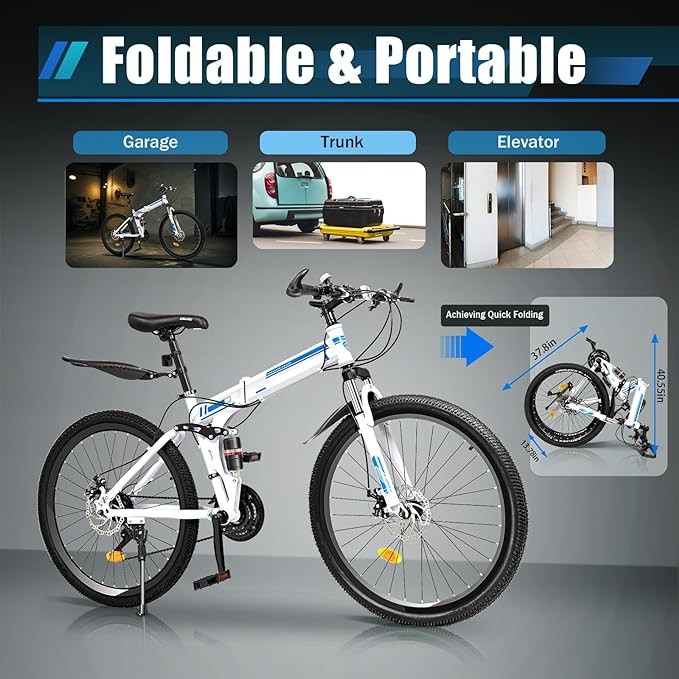 XIANGMIHU 26 in Folding Mountain Bike 21 Speed Folding Bikes for Adults│Commuter Bikes for Men Women │Carbon Steel Frame Mountain Bike with Dual Disc Brakes│US in Stock