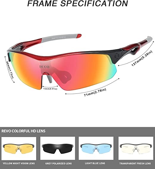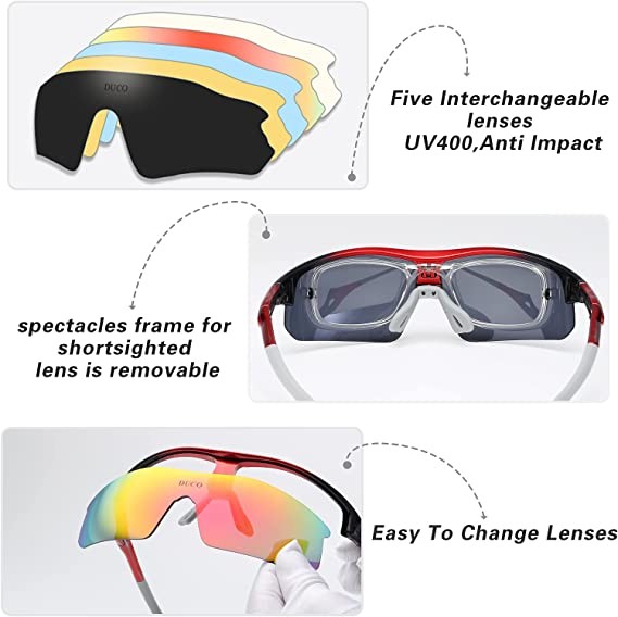Duco Polarized Sports Cycling Sunglasses for Men with 5 Interchangeable Lenses for Running Golf Fishing Hiking Baseball
