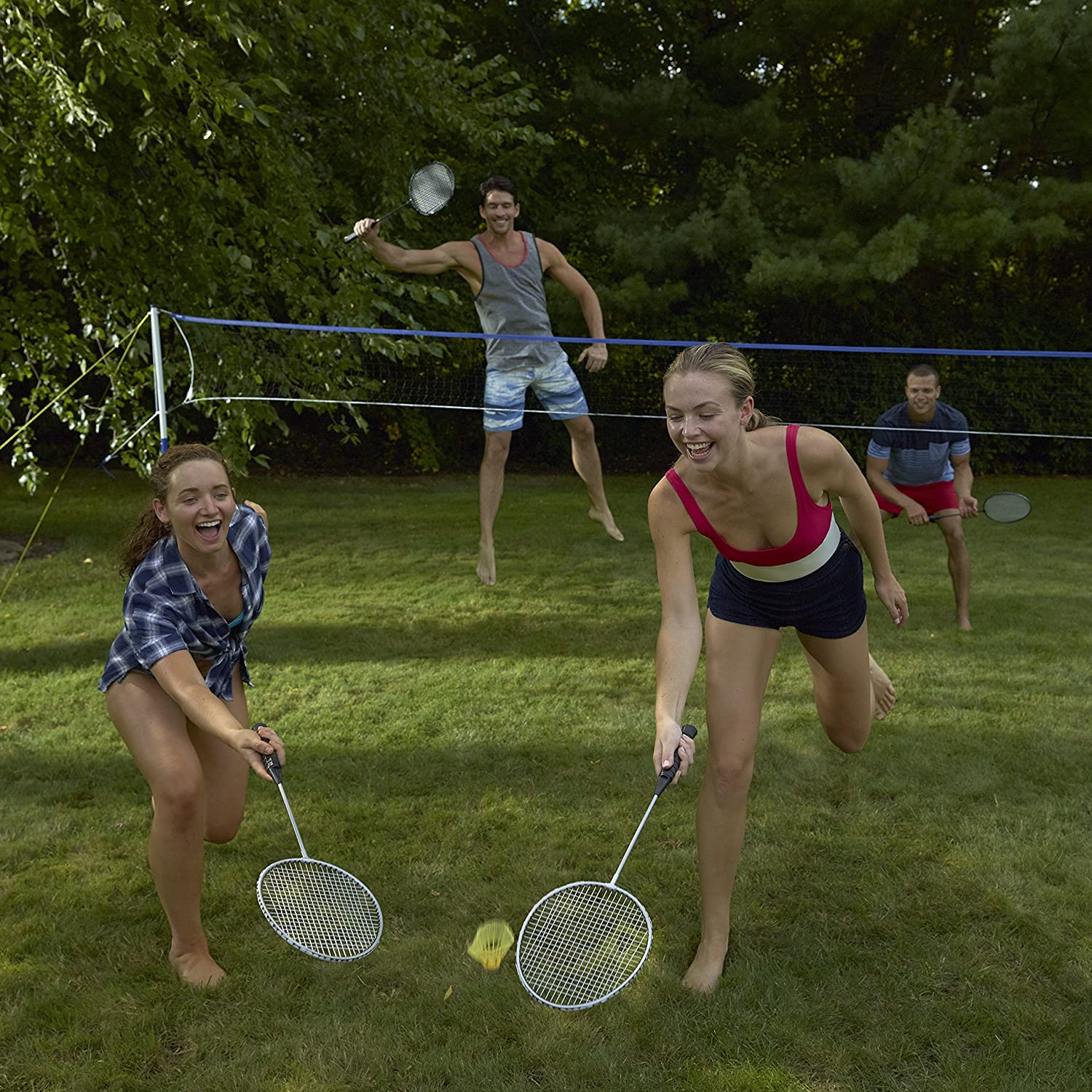 • INCLUDES 4 steel badminton raquets and 2 shuttlecocks are included