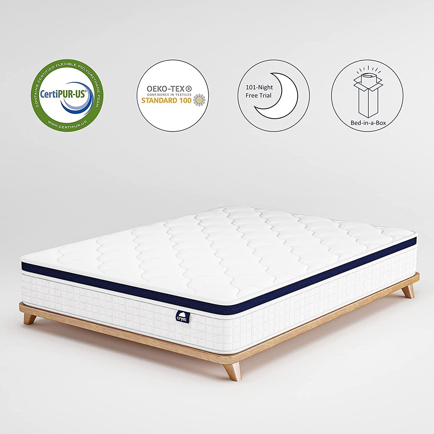 Full Size Mattress 30.48cm Boxed Bed, Crystli 30.48cm Hybrid Mattress with Zero Pressure Foam, Innerspring Mattress for Stress Relief and Cool Sleep, Medium Firm, CertiPUR-US Certified